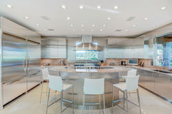 This floorplan was well planned and strategically executed to offer an open plan dining room and a kitchen fully-equipped with top of the line Viking appliances (refrigerator, wine cooler, ice machine). The cabinets are made from stainless steel and offer a true compliment to the gorgeous 6-burner stove.